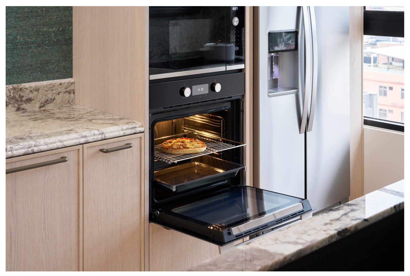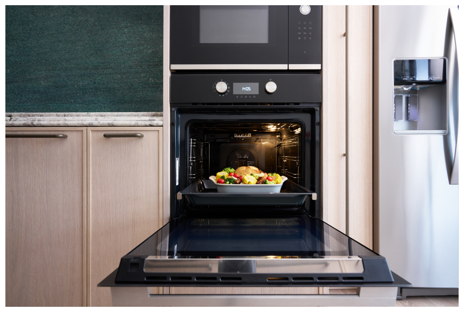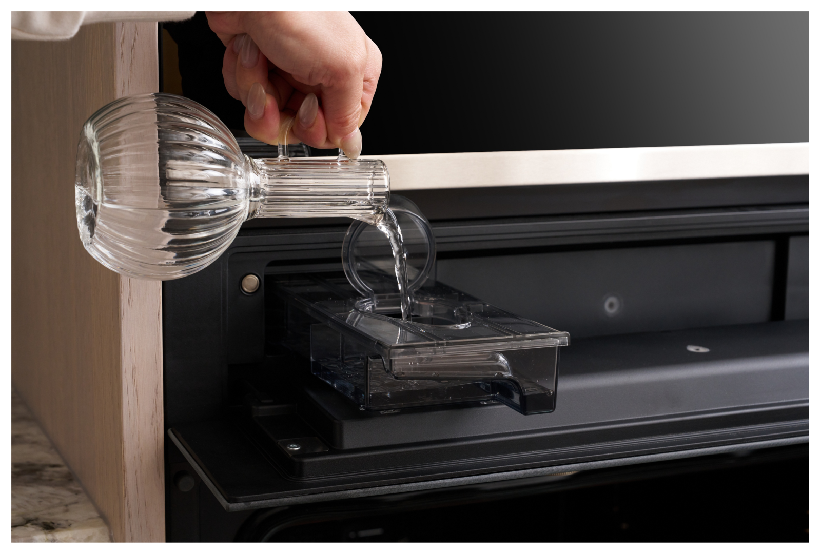 TEKA 60cm 舒肥蒸烤箱的極窄邊框黑玻設計,使它在視覺上自然融入櫥櫃立面,不成為突兀的家電存在,而是空間的一部分,正符合鄧總監所說的:「它看起來就應該在那裡」。 ►從舒肥、加熱到烘焙料理,TEKA 60cm 舒肥蒸烤箱以精準溫控,回應多元菜色需求,讓日常下廚也能展現餐廳級完成度。 ►TEKA 60cm 舒肥蒸烤箱採用直覺式加水設計,並搭載水自清系統,降低清潔負擔,讓高機能設備操作更便利、維護更輕鬆。