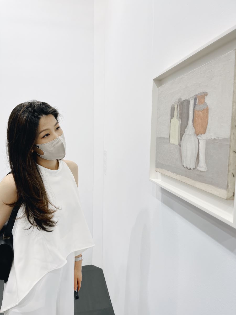 納畫廊(David Zwirner)帶來了義大利巨匠喬治莫蘭迪 Giorgio Morandi 最為世人讚譽的兩個系列《靜物》及《花卉》中的作品。第一次看到莫蘭迪的真跡,為它柔和的啞光質感和優雅的色彩調和所著迷。也難怪清冷淡雅的「莫蘭迪色」在藝術家離世半個多世紀後,依然為各行各業帶來源源不斷的視覺靈感,在室內設計中更是如此。戶外的中庭花園則更適合擺放尺寸較大的雕塑作品,溫潤的石材與綠化區域的結合能夠營造出自然、不落俗套的戶外風格。
