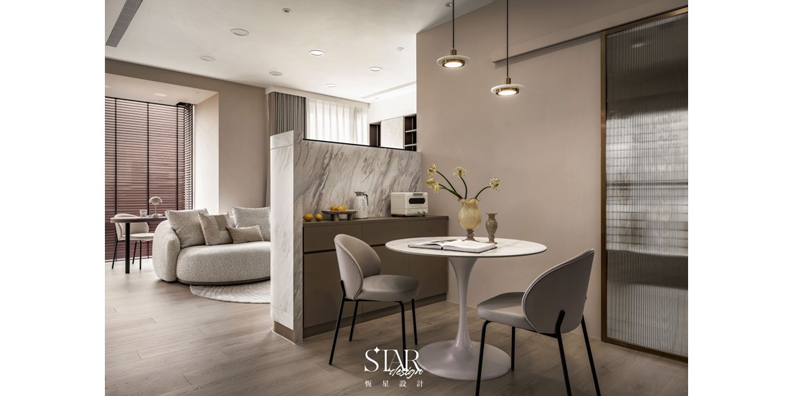 主要材料 :   木作/系統櫃/鐵件/茶玻/線板/木百葉/木地板